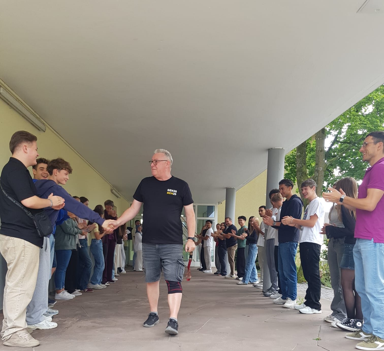Am Mittwoch, den 27.08.2025 wurde unser Hausmeister Klaus Mengeler nach 25 Jahren Dienst an unserer Schule in den wohlverdienten Ruhestand verabschiedet. Schülerschaft und Lehrerkollegium bedankten sich mit einem Besenspalier und Applaus. Wir wünschen alles Gute für die Zukunft!