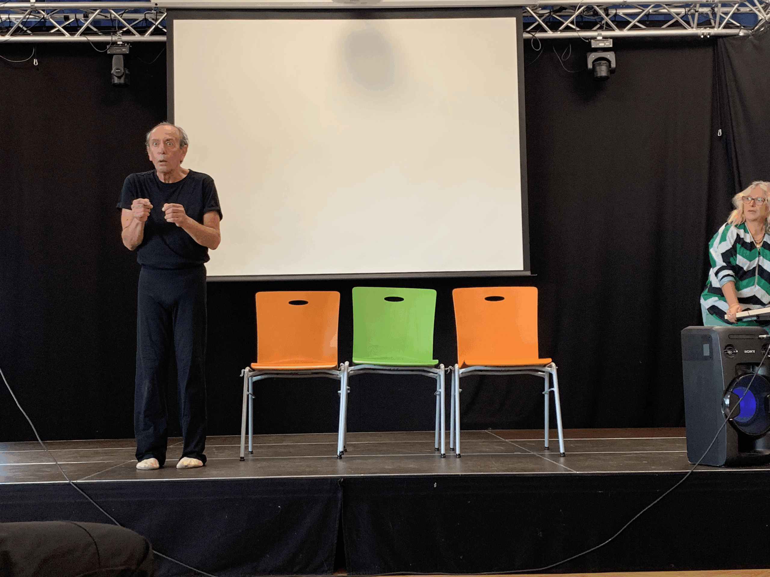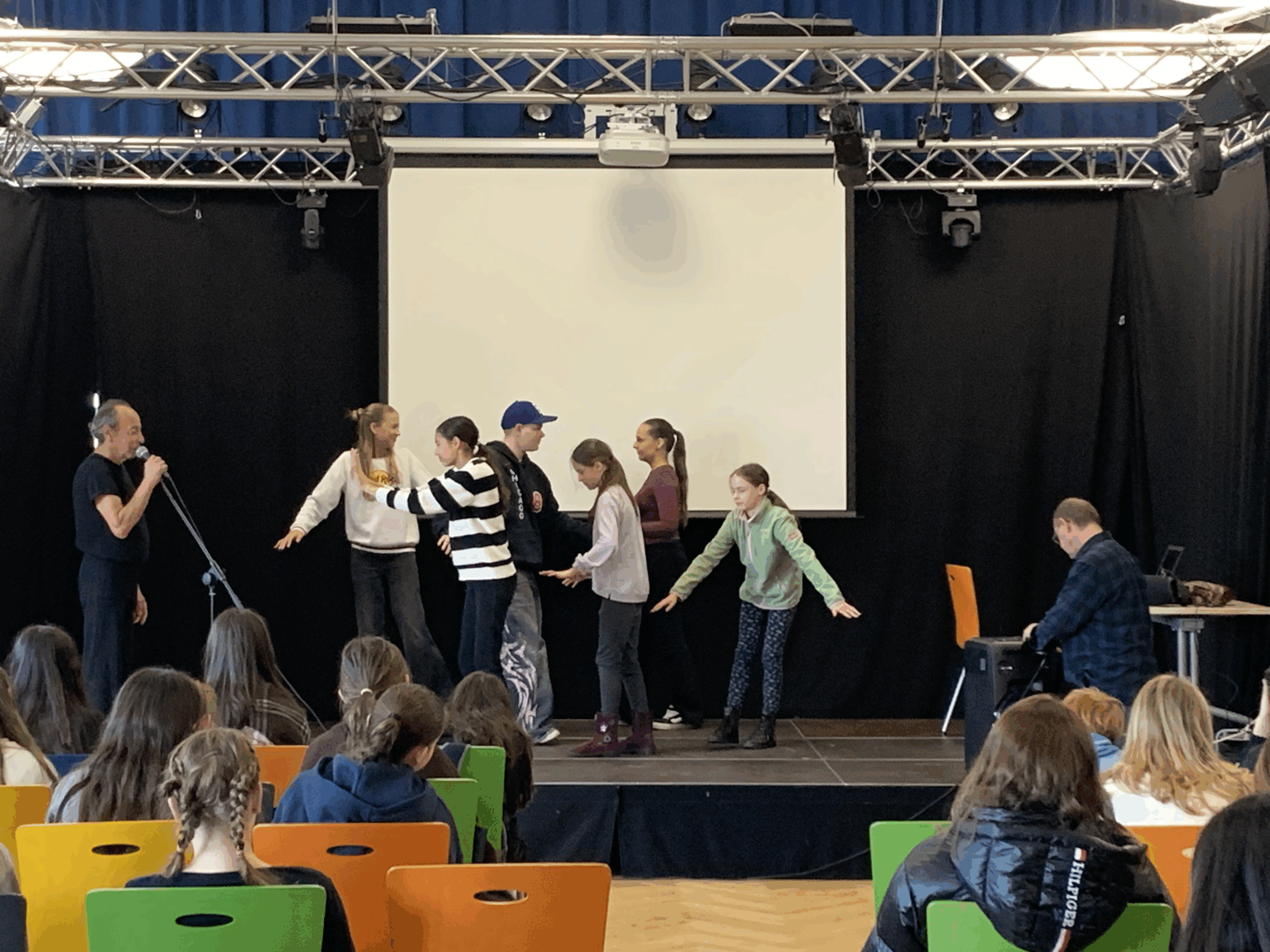 Am Donnerstag, den 30.10.2025 bekamen die Darstellen und Gestalten-Kurse hohen Besuch. Der bekannte Pantomime Arnold Sarajinski beehrte die DG-Schülerinnen und -Schüler im Forum und zeigte auf beeindruckende Art und Weise, was ein Pantomime ohne Worte auf einer Bühne erschaffen kann.