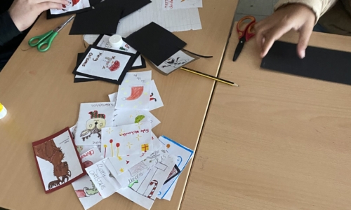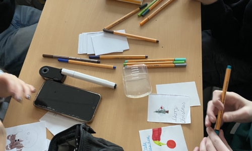 Von dem letztjährigen Weihnachtssong haben sich zwei Schüler des damals 10. Jahrgangs inspirieren lassen und eine Techno-Variante entwickelt. Die Kreativität und das Engagement der Schüler hat überzeugt, so dass der diesjährige Song bereits im April fertig war. Die fehlenden Bilder für das Video hat der DG-Kurs im Jahrgang 9 unter der Leitung von Frau Gehmeyr entwickelt. So wurde der bekannte Text mit neuem Sound und aktuellen Bildern zu unserem Weihnachtssong 2024: „Zeit des Lichts 2“.