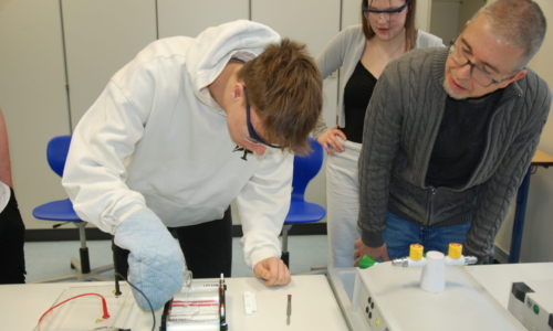 Schülerinnen und Schüler der Biologie Leistungs- und Grundkurse der Jahrgangsstufe Q2 erhielten an diesen Projekttagen vertiefende Einblicke in die Anwendung moderner gentechnischer Methoden und führten selbständig Experimente zur „Analyse von DNA“ und zur „Genklonierung“ unter Anleitung der Fachlehrer durch.